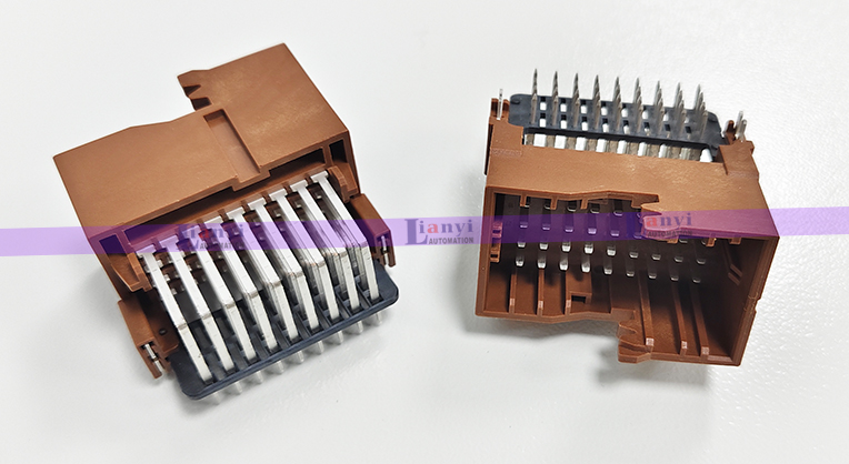 2、自動組裝:夾取工具把連接器塑膠殼夾取到組裝工位,進(jìn)行自動組裝。